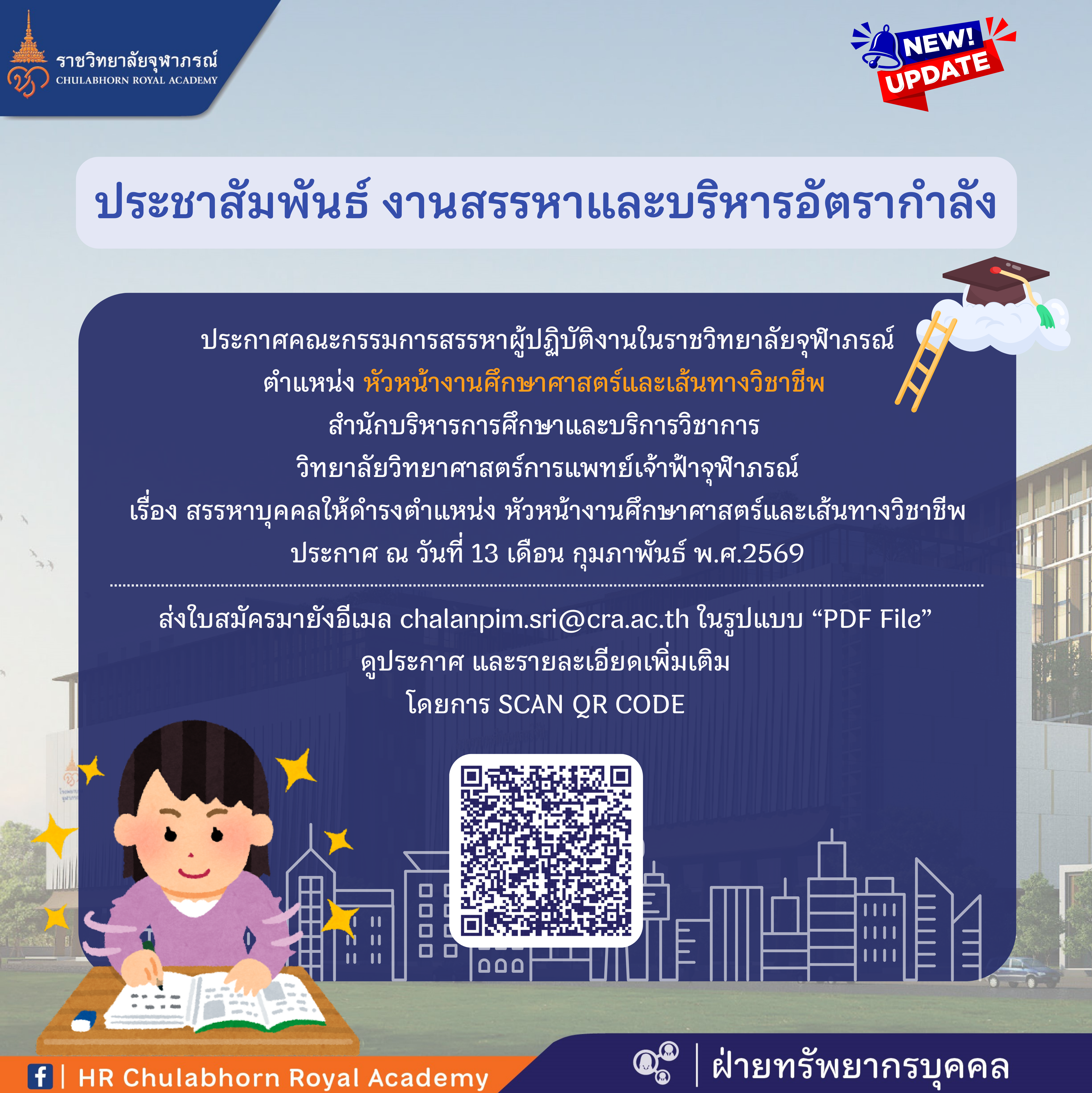 สามารถดูรายละเอียดเพิ่มเติมตามประกาศคณะกรรมการสรรหาผู้ปฏิบัติงานฯ