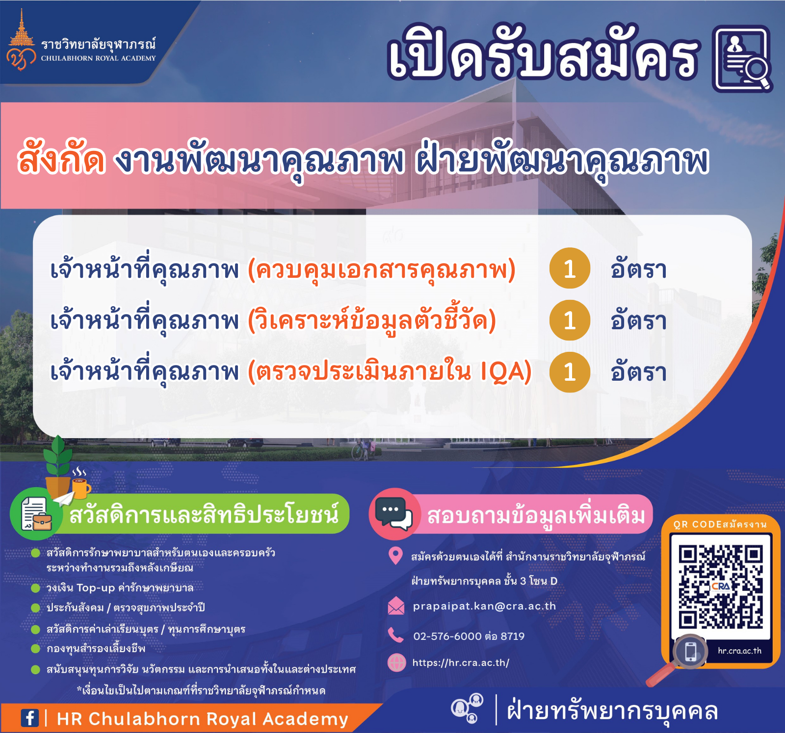 เจ้าหน้าที่คุณภาพ สังกัด งานพัฒนาคุณภาพ ฝ่ายพัฒนาคุณภาพ สำนักงานราชวิทยาลัยจุฬาภรณ์
