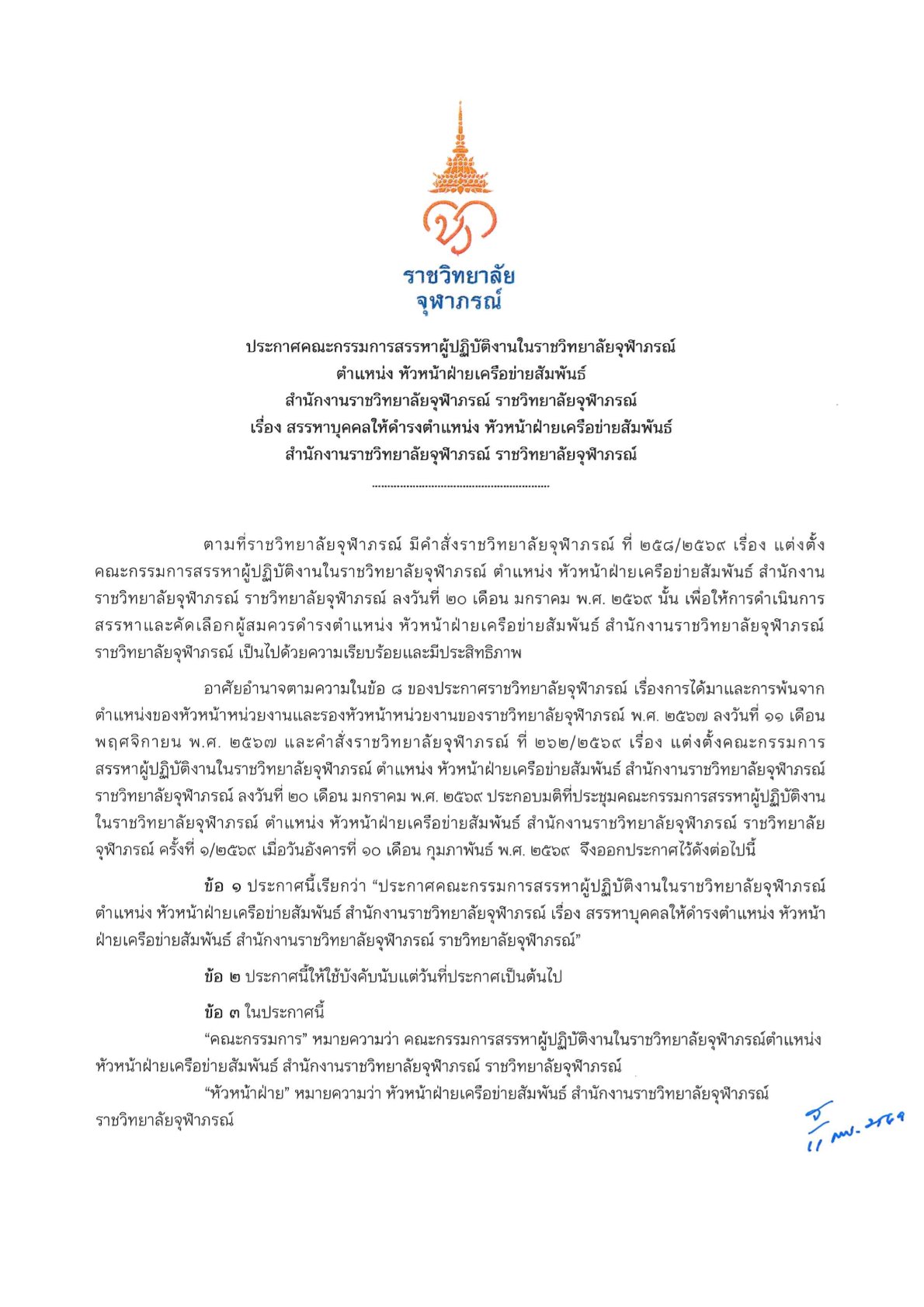 ดูรายละเอียดเพิ่มเติมตามประกาศแนบท้าย