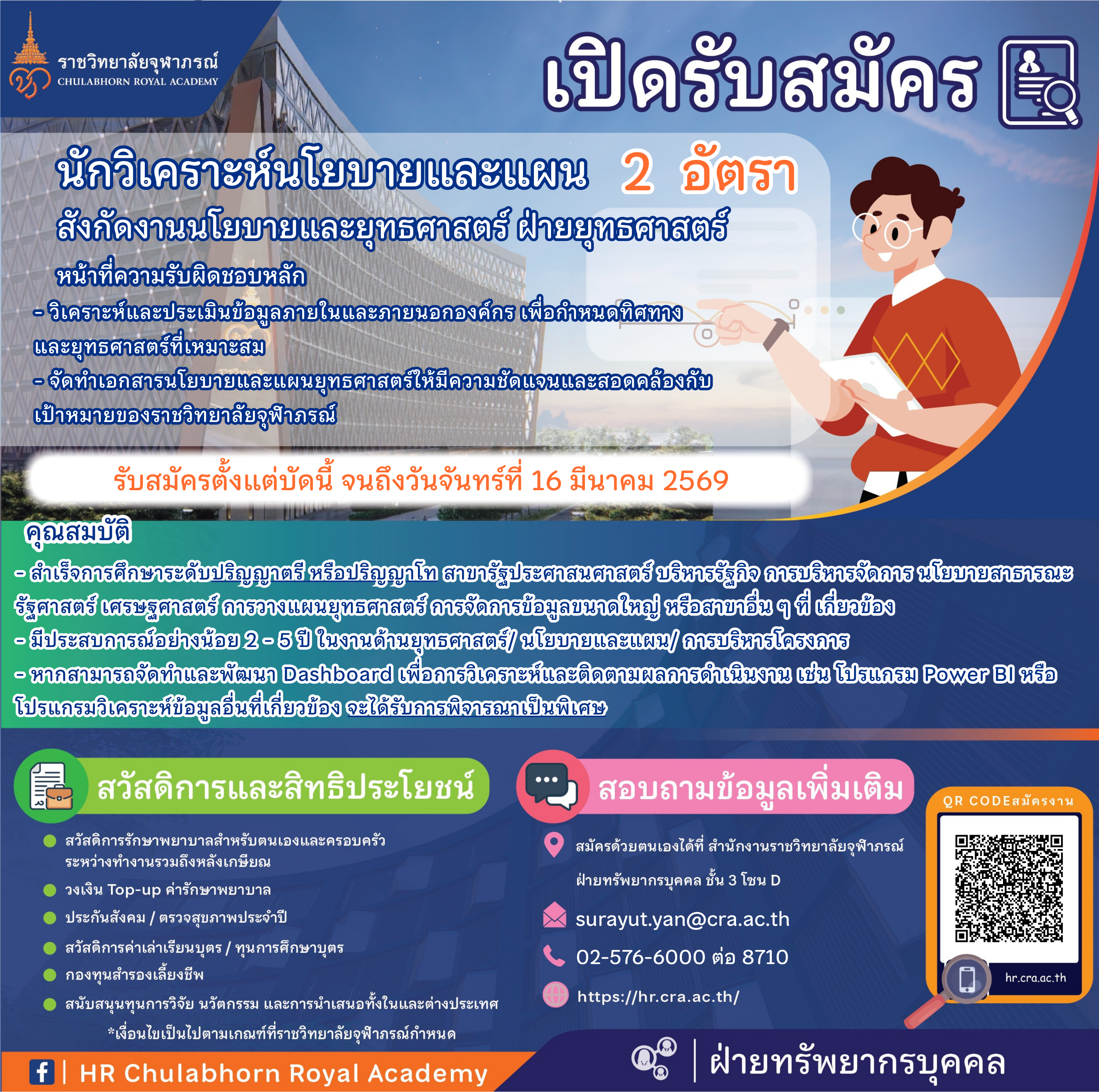 มีประสบการณ์อย่างน้อย 2 - 5 ปี ในงานด้านยุทธศาสตร์/ นโยบายและแผน/ การบริหารโครงการ