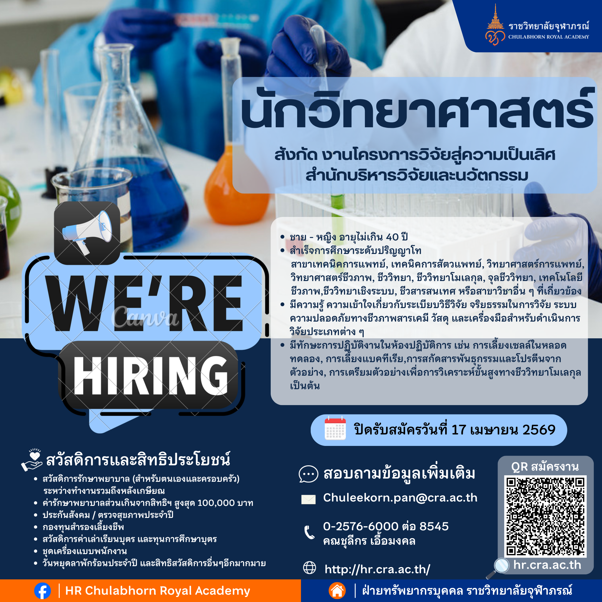 - หากผู้เข้ารับการสอบสัมภาษณ์ฯ ได้ผ่านการคัดเลือกให้เข้าปฏิบัติงาน ท่านต้องยื่นผลการทดสอบความสามารถด้านภาษาอังกฤษ ที่ผ่านตามระดับคะแนนที่ราชวิทยาลัยกำหนด ภายใน 180 วัน หลังจากวันเริ่มปฏิบัติงาน จึงจะได้รับการบรรจุเป็นผู้ปฏิบัติงานในราชวิทยาลัย