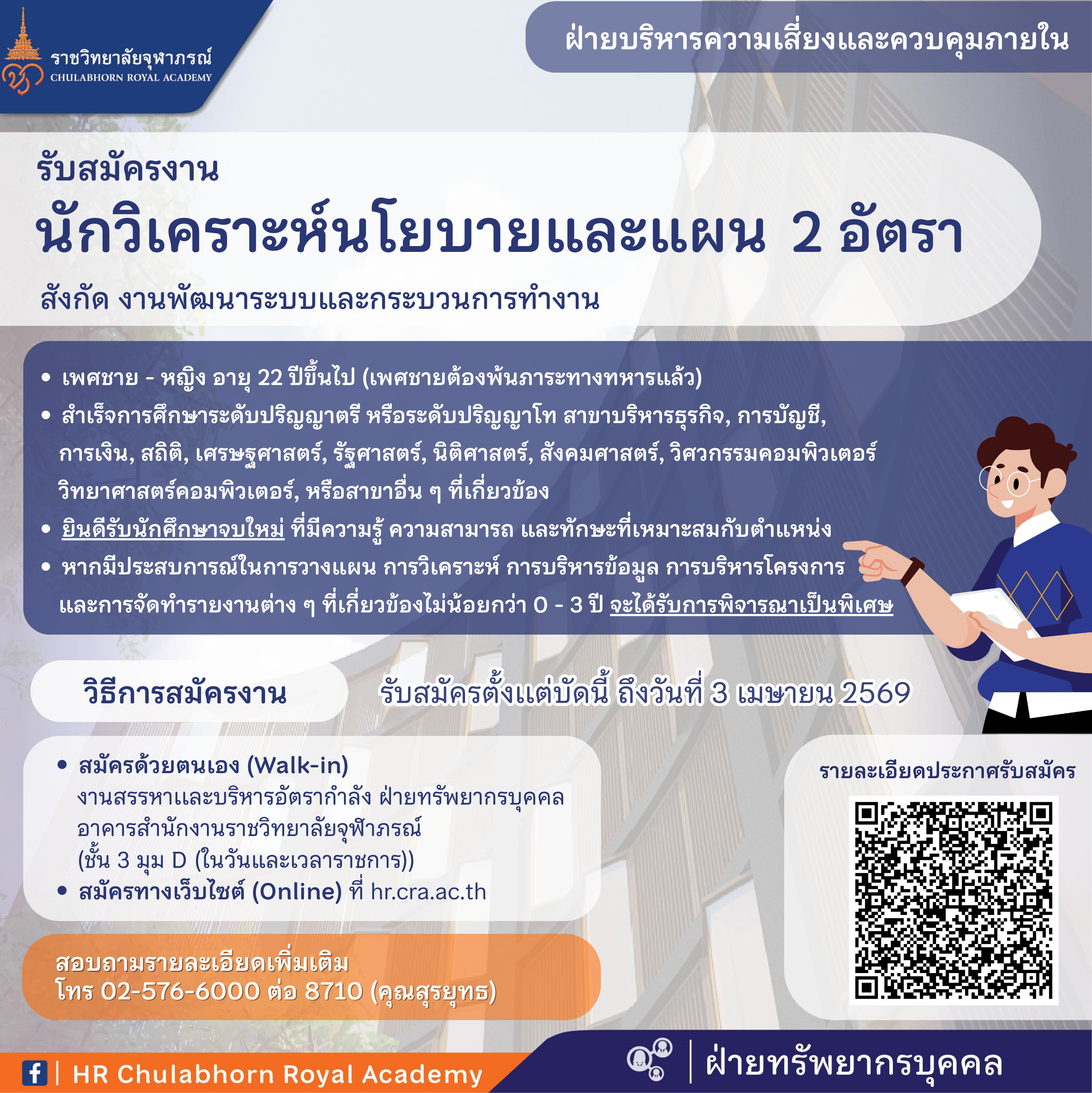 ยินดีรับนักศึกษาจบใหม่ ที่มีความรู้ ความสามารถ และทักษะที่เหมาะสมกับตำแหน่ง