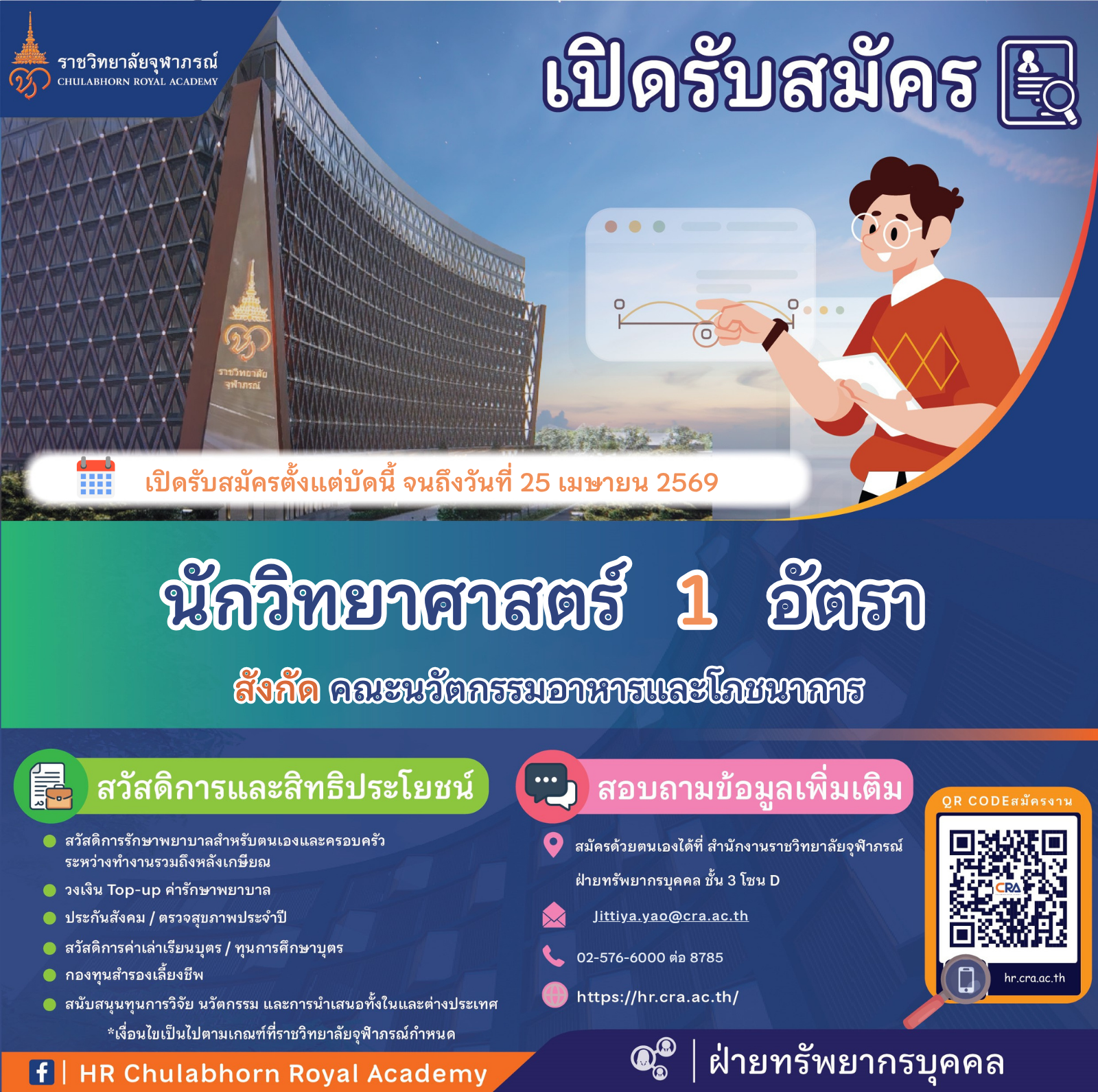 ๓. ยินดีรับนักศึกษาจบใหม่ หรือถ้ามีประสบการณ์ทำงานอย่างน้อย ๑ ปี จะได้รับการพิจารณาเป็นพิเศษ