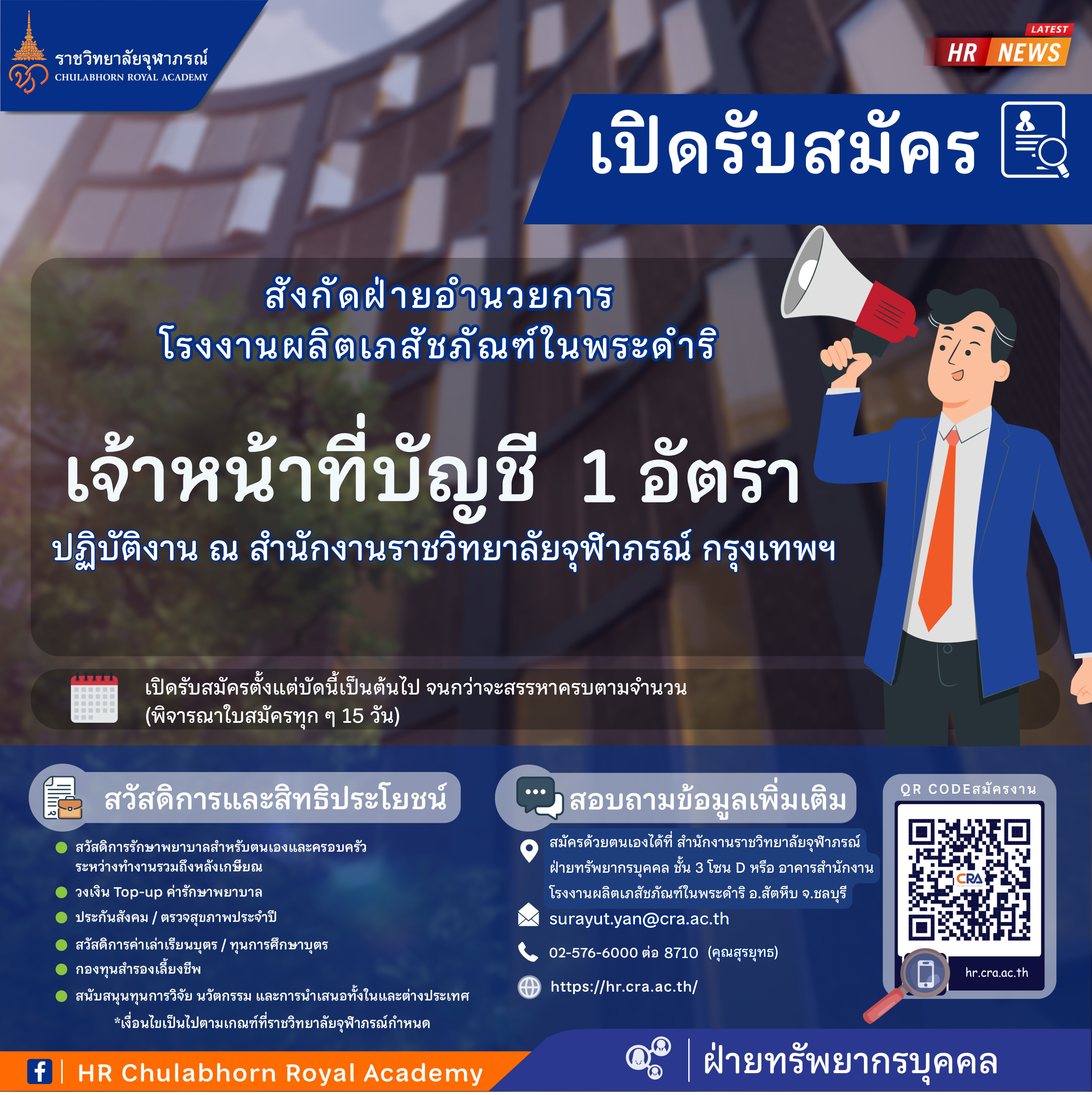 หากมีประสบการณ์ในการจัดทำบัญชีรายรับ-รายจ่าย, รายงานปิดงบการเงิน, การคำนวณต้นทุนที่เกิดขึ้นในการผลิต, การจัดทำแผนและงบประมาณประจำปี ในหน่วยงานของรัฐหรือเอกชน 2 ปีขึ้นไปจะได้รับการพิจารณาเป็นพิเศษ