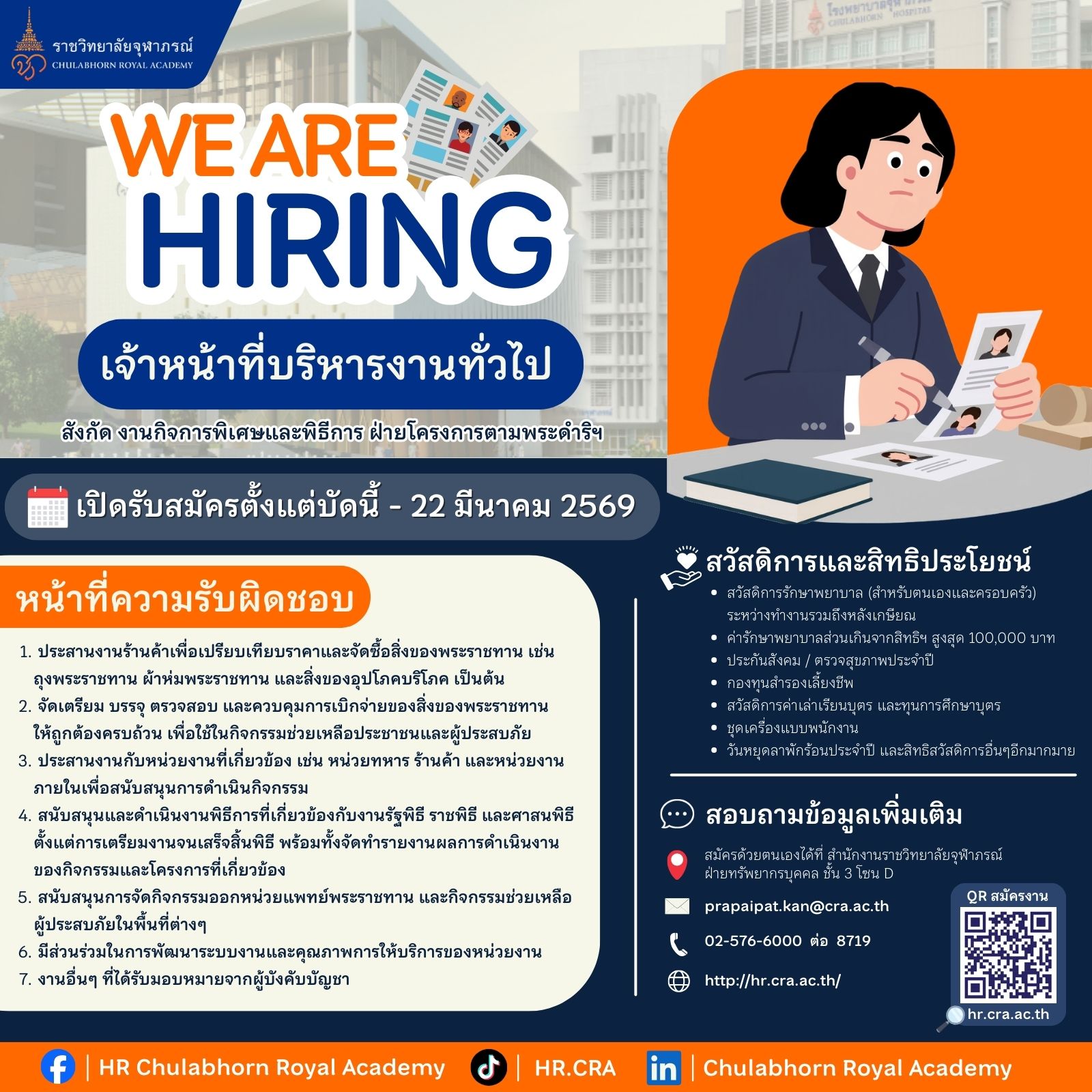 เจ้าหน้าที่บริหารงานทั่วไป สังกัด งานกิจการพิเศษและพิธีการ ฝ่ายโครงการตามพระดำริฯ