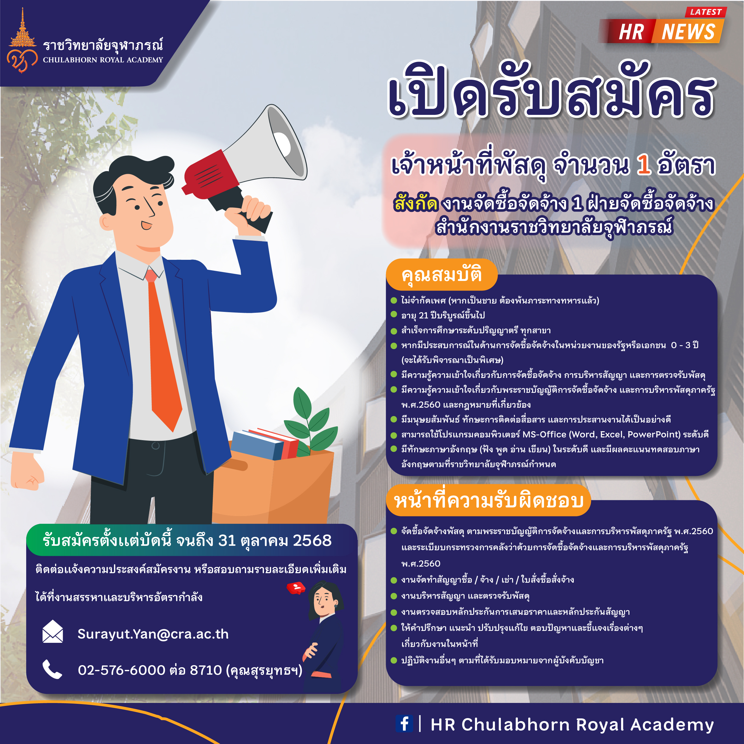 หากมีประสบการณ์ในด้านการจัดซื้อจัดจ้างในหน่วยงานของรัฐหรือเอกชน 0 - 3 ปี ขึ้นไป (จะได้รับพิจารณาเป็นพิเศษ)