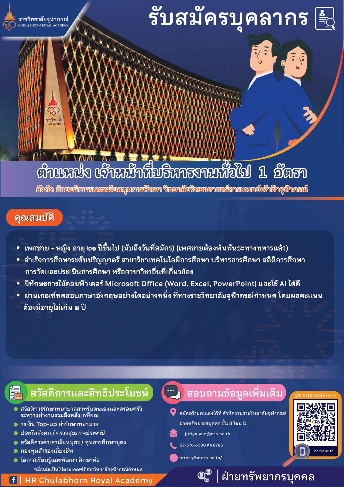 (๑) ผู้สมัครงานทุกคนต้องมีผลการทดสอบความสามารถด้านภาษาอังกฤษตามที่ราชวิทยาลัยกำหนดโดยส่งมาพร้อมเอกสารสมัครงาน หรือก่อนวันที่ เข้ารับการสอบสัมภาษณ์และคัดเลือก และผลการทดสอบฯ ต้องมีอายุไม่เกิน ๒ ปี ตามที่ระบุไว้ในเอกสารผลการทดสอบฯ