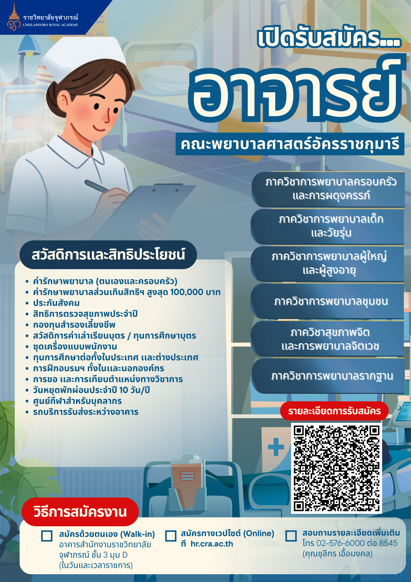 - พยาบาลในสาขาพยาบาศาสตร์ หรือ มีตำแหน่งไม่ต่ำกว่าผู้ชำนาญการทางการพยาบาล