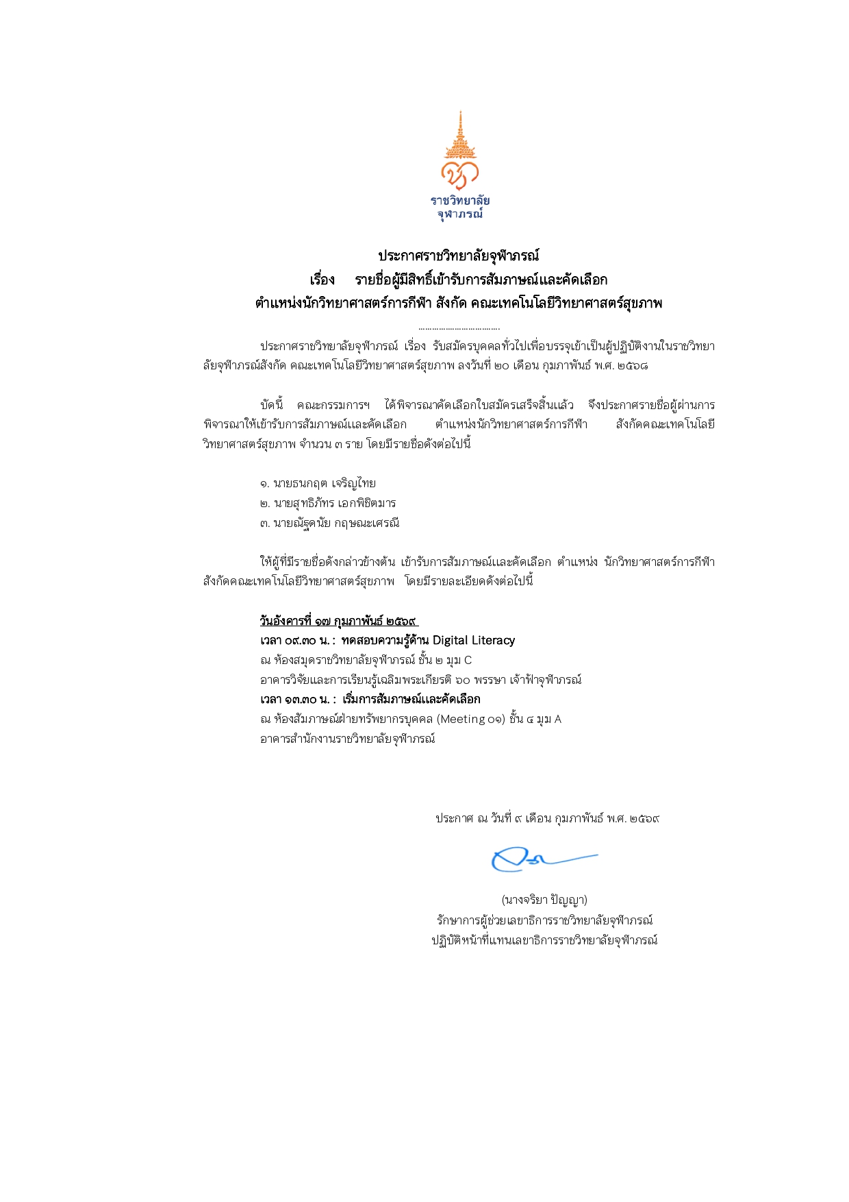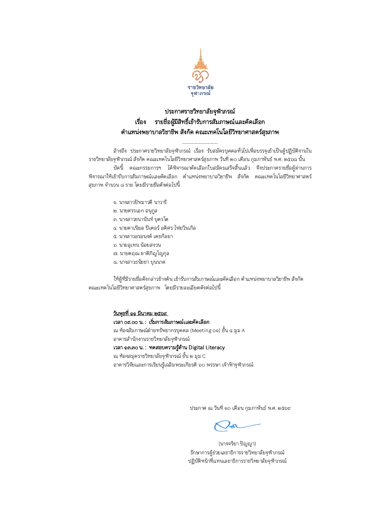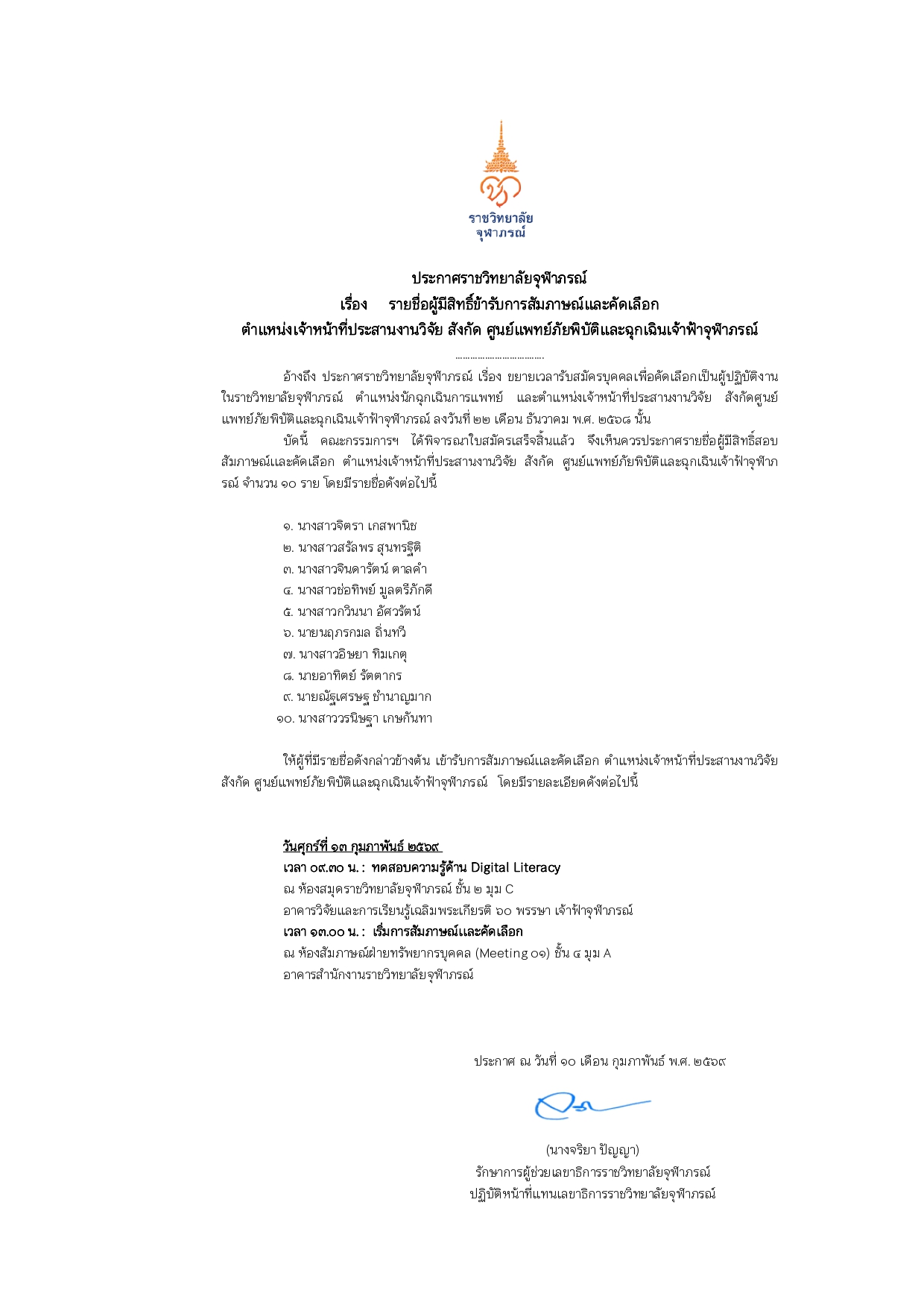 ตามประกาศรับสมัครบุคคลทั่วไปเพื่อบรรจุเป็นผู้ปฏิบัติงานในราชวิทยาลัยจุฬาภรณ์ ตำแหน่ง นักวิเคราะห์นโย...