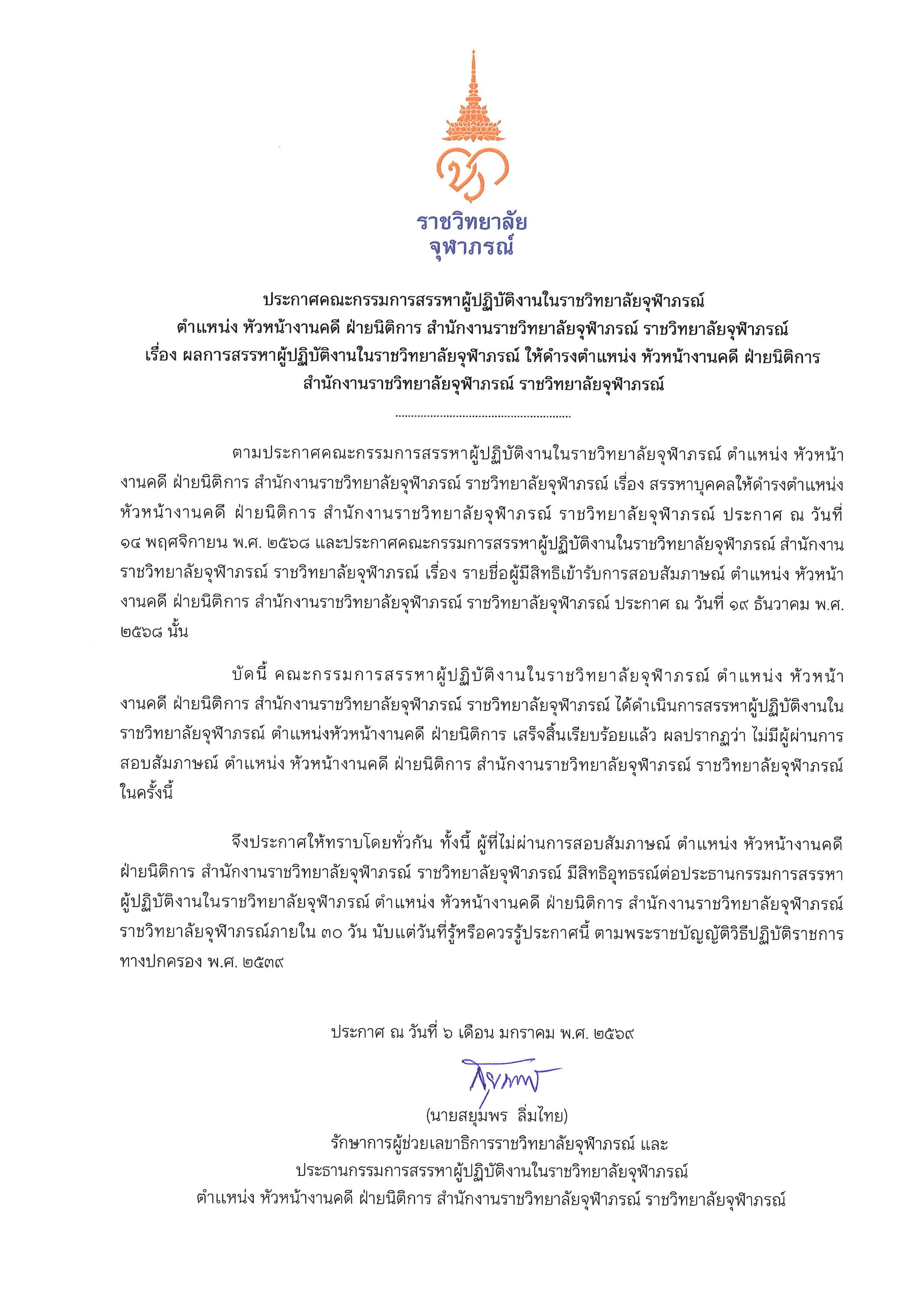 อ้างถึง ประกาศราชวิทยาลัยจุฬาภรณ์ รับสมัครบุคคลเพื่อคัดเลือกเป็นผู้ปฏิบัติงานในราชวิทยาลัยจุฬาภรณ์ ต...