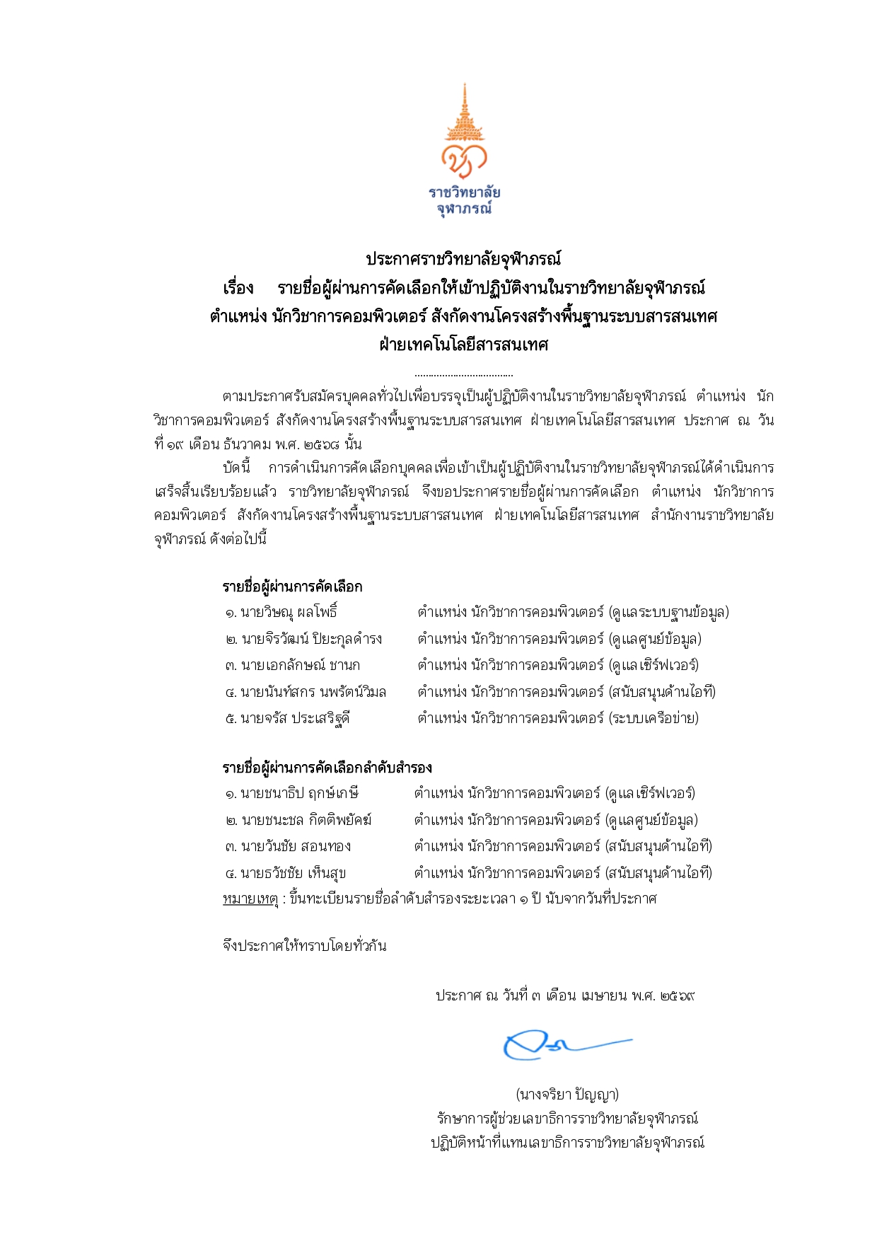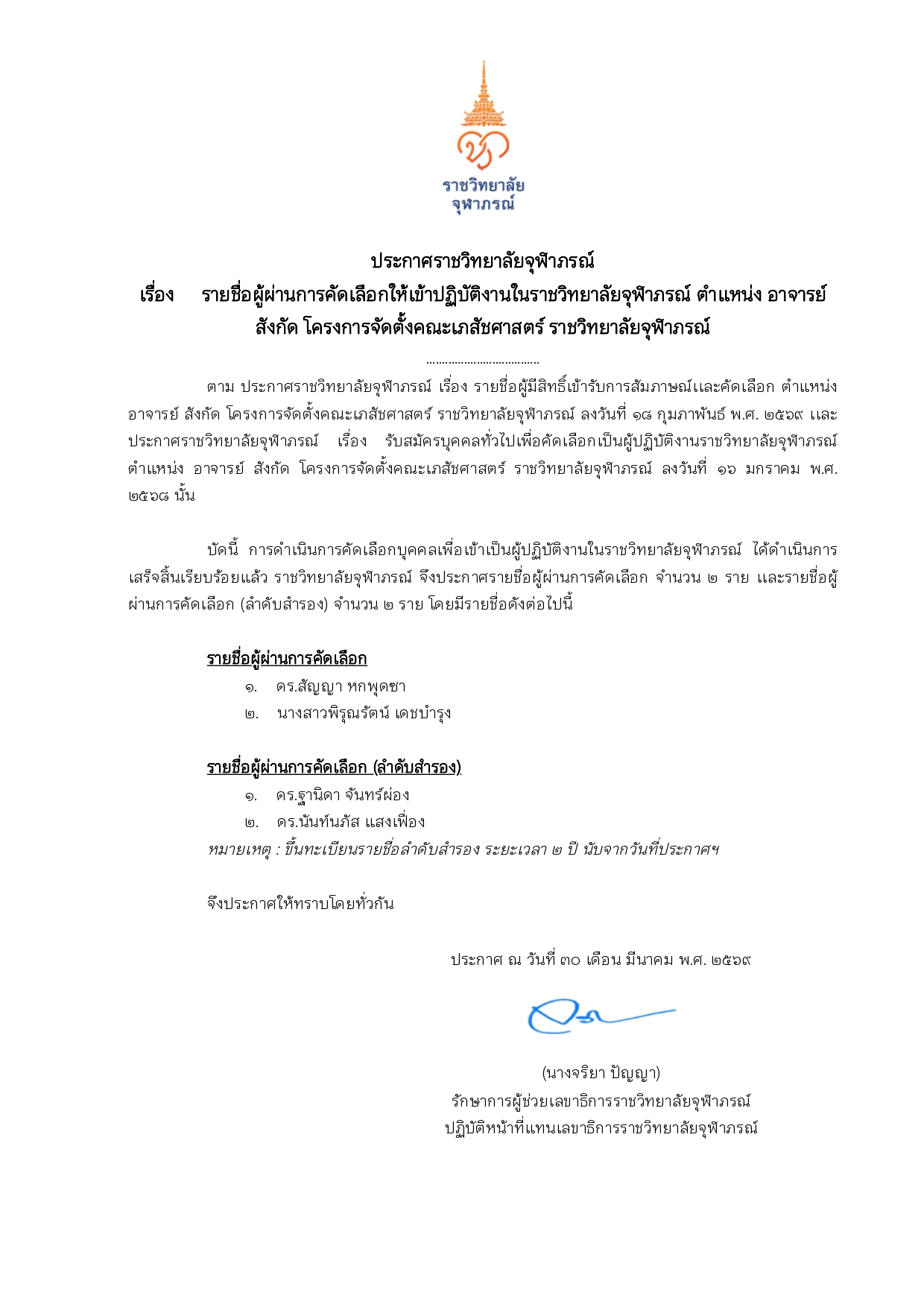 อ้างถึง ประกาศราชวิทยาลัยจุฬาภรณ์ เรื่อง ประกาศรับสมัครบุคคลทั่วไปเพื่อคัดเลือกเป็นผู้ปฏิบ...